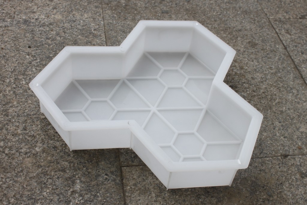 此款路面彩磚塑料模具主要使用了全新PP聚丙烯為原料,經精良的注塑機械對原料熱熔之后注塑加工而成,主要設計款式以三葉型設計,是一款非常新穎獨特的彩磚塑模。一般來說使用此類塑模加工路面彩色磚塊的時候,純粹的澆筑灰色水泥是達不到彩色的效果,所以我們必須添加適當的氧化顏料來發揮這個彩磚塑模的真正功效。