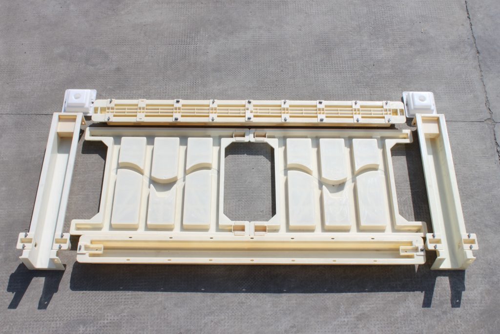 三,72型高鐵護(hù)欄欄片模具,之所以整套護(hù)欄模具稱為海鷗高鐵護(hù)欄塑料模具,原因就是護(hù)欄欄片模具采用了海鷗設(shè)計,分為AB兩面,尺寸均為101*72*5厘米,拼接處分別置入欄片堵頭,方面施工。