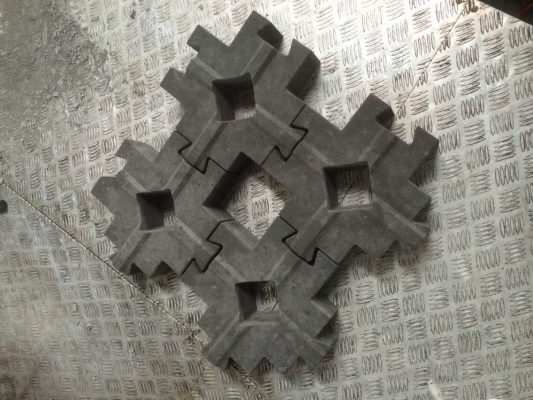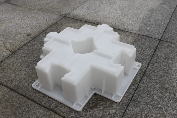 此鎖塊護坡模具為新型設計開發,相比常規使用的工字連鎖護坡模具來說,其連鎖結構及組合方式稍顯難度,直觀的從它的外觀就能全部體現其個性特色。當然除了長的怪,其表面各種高低凸起的水泥棱條,對于水流沖擊的減緩效果也是極其出色的,經過組合之后,連鎖護坡模具所制護坡磚四合一拼接更可打造五個獨立植草空間,對于營造一個真正的生態護坡工程來說也錦上添花,粗壯的植物根系扎實穩定的維系著地表與護坡層,這就是我們需要的。