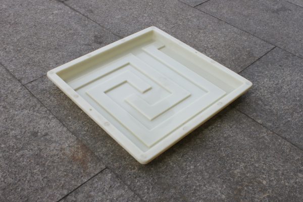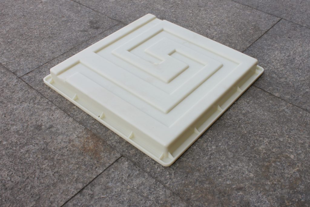 整體設計樣式以方格螺旋條紋為主的步道彩磚模具模盒,藝術氣息濃厚。材質采用了在水泥制品模具相對價格稍高的ABS塑料原料,常規均為聚丙烯塑料,經過先進注塑機型熱熔成型出模,所以在質量上ABS材質的步道彩磚模具模盒更為高端。