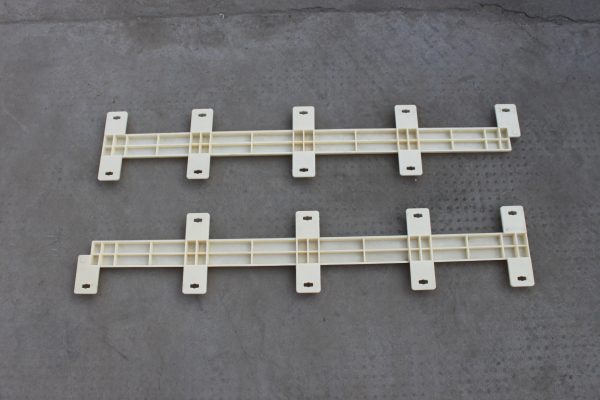 這款鐵路護欄塑料模具所有組件均采用高精度要求的ABS樹脂原料生產加工而成,主要有以下幾個部分組成: