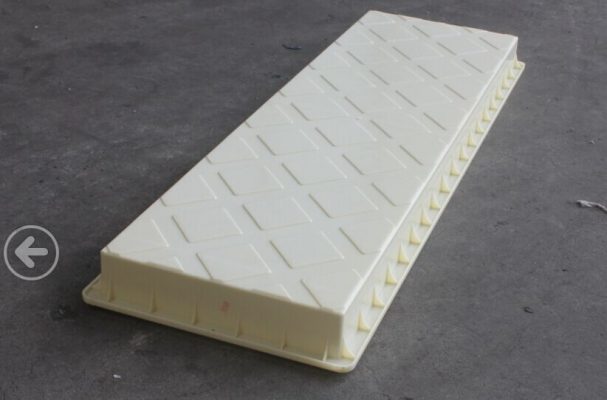 此款為黑龍江哈(哈爾濱)佳(佳木斯)高鐵線路專用的水泥基蓋板模具,采用全新ABS塑料為原料,以菱形防滑設計為主體,模具內部亦有小型鐵標設計,由于水泥基蓋板模具尺寸較長較大,主要應用場所為步板等相關行道鋪設。