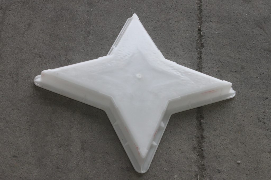 從表面上看,四角星圖案由里到外整體設計,不論在外形還是內在裝飾圖案上,均是如此。細節之處在于在塑料彩磚模盒內部以光面和毛面的四角星型圖案組成,在實際預制完水泥彩磚后,起到美觀及防滑效果,深受施工方青睞。