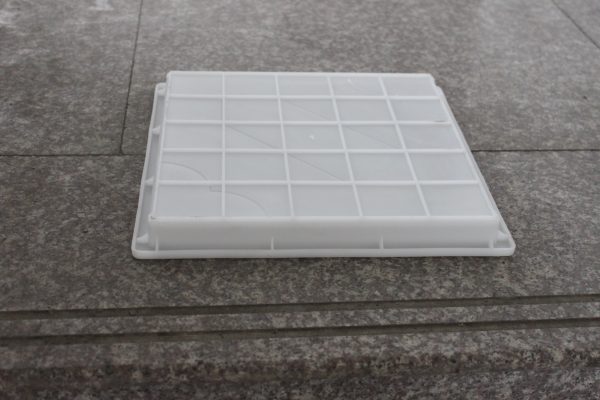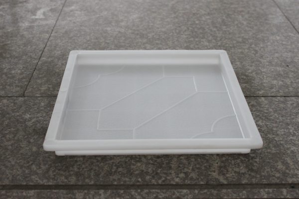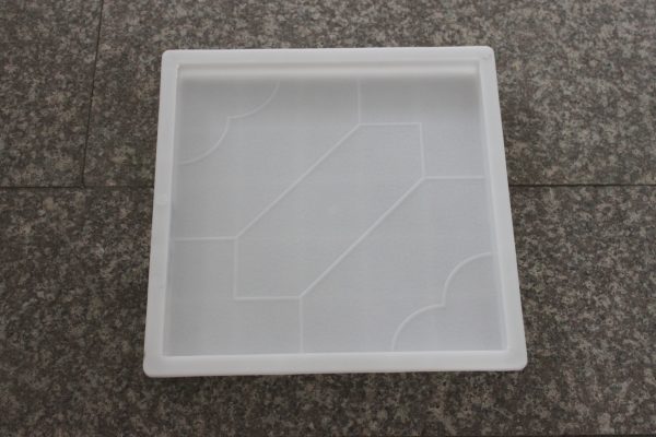 塑料彩磚模盒多以ABS或者PP聚丙烯塑料加工而來,此款采用聚丙烯原料,主要以四拼結構的梅花防滑圖案設計,在塑料彩磚模盒底部布置了5X5正方形結構的小方格加強筋,四周每條邊則是四條小三角加強筋,有效的提升了梅花圖案彩磚模盒在預制過程中的穩定性。