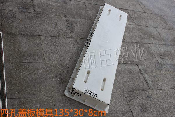 根據其提到的超長尺寸,相比常規1米長度以下的漏水蓋板模具來講,此模具已長達135厘米,寬度30厘米,厚度8厘米,預制而成的水泥漏水蓋板可橫向鋪設面積約為0.35平方米,具體請參考下圖: