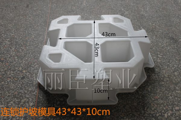 一款比較新穎的自鎖式護坡磚模具,廣泛運用于水利護坡設(shè)施項目,麗臣品牌護坡磚模具均采用聚丙烯塑料,質(zhì)量更為穩(wěn)定。由于其可靠的自鎖形式,是生態(tài)護坡穩(wěn)定運行的一個重要基本要素,大量預留可植草間隙,更是提升了這個生態(tài)護坡模具所制自鎖式護坡磚的可操作性。