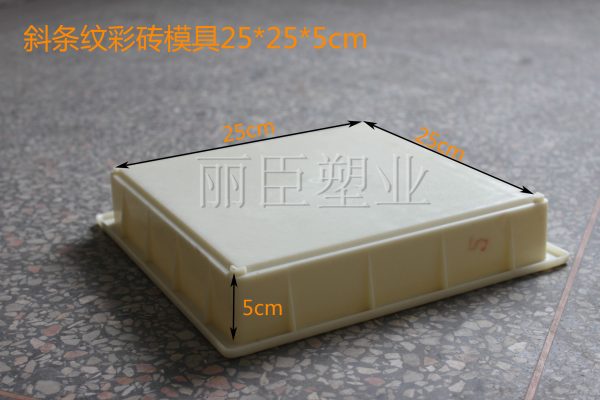 在這款步道磚塑料模盒在外觀設計上,通過改變形狀,花樣等,讓塑料彩磚模具制品在后期澆筑過程中能更好的使用。條紋的設計上改變以往橫向條紋的使用,以斜條紋樣式為彩磚模盒內部的主要形狀,斜條紋的設計可以增大彩磚與行人與地面之間的接觸面積,即便是在下雨天出行時也不會打滑等現象,且還能美觀使用場所的環境,常用于城市、公園、社區等步行道上。
