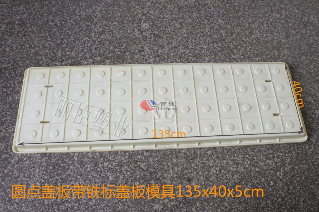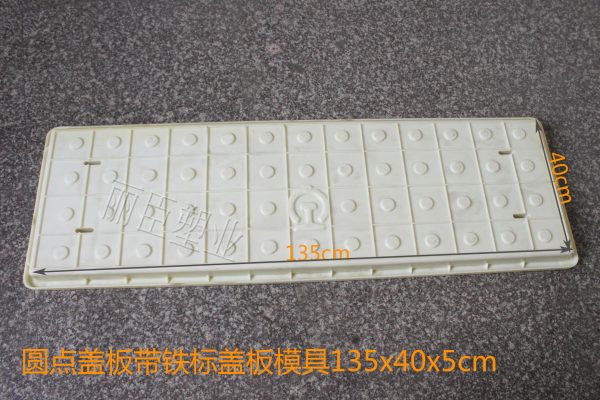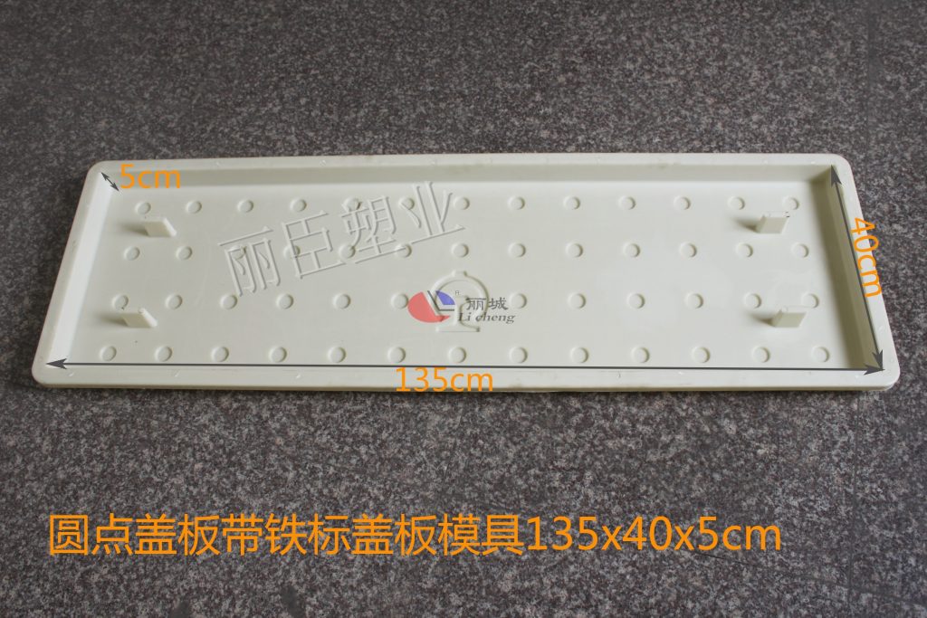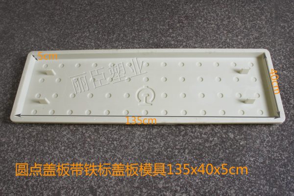 這款四孔圓點蓋板模具的尺寸為長135cm、寬40cm、高為5cm,用料上采用穩定性較強的ABS為注塑原料,在澆筑水泥制品過程中能更好的保證砼制品模具不會發生變形,在對蓋板模具的四周添加了加強筋,小三角樣式更好的支撐塑料蓋板模具邊緣。