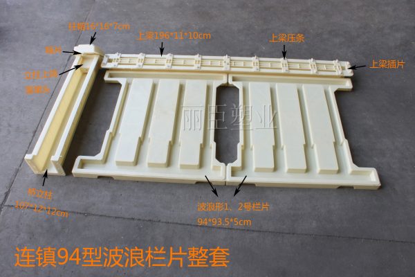 連鎮鐵路柵欄模具欄片在澆筑過程中采用ABS塑料為主要注塑原料,ABS塑料原料質地較硬,在對水泥制品模具澆筑時不易發生變形等情況,也能減少因運輸問題而照成的模具破順變形等情況,澆筑成型后的水泥制品柵欄在外觀上呈現波浪形,更能符合符合江南水鄉風格。