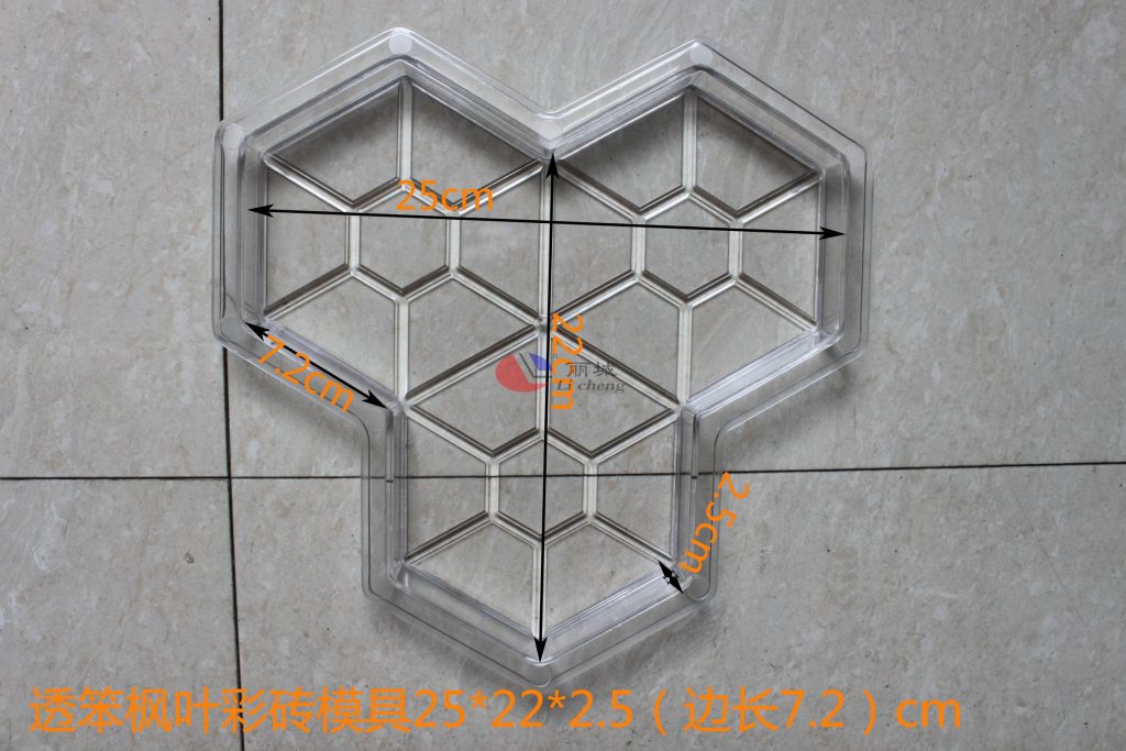 彩磚的澆筑模具大多采用PP聚丙烯塑料為主要原料,而這款彩磚模具成型外觀上呈透明色,其主要原因是在注塑方面采用PS透笨來作為主要原料。