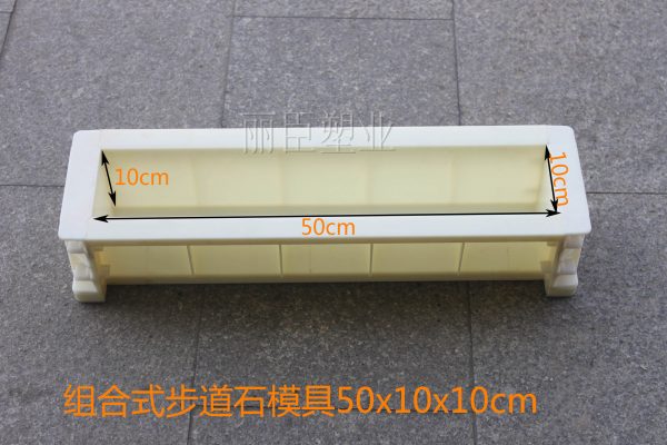 麗臣之前有推出同款組合式步道石模具,其規格是在25x10x10cm,而現在這款組合式步道石模具其規格是在50*10*10cm,在長度上大大的進行增加了,讓其后面澆筑型的的混凝土步道石水泥制品在使用過程中能更為便利。